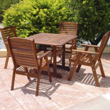 Меблі виготовляються з дерева Мербау, яке ростає в Південно-Східній Азії. Меблі ідеально підходять для використання на відкритих майданчиках та служать необмежено довго.